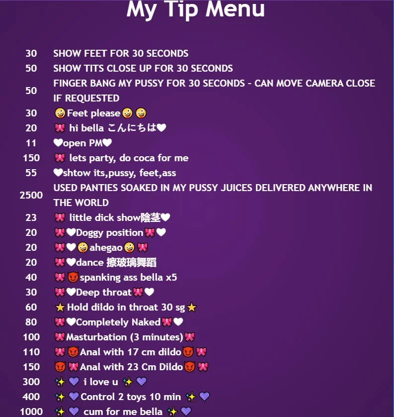 Анилингус, Из попки в рот, Сидение на лице, Стриптиз, Массаж, Дрочка рукой, Анал, Шлепки, Эротические танцы, Минет, Мастурбация, Ахэгао, Камшот, Мастурбация пальцами, Эякуляция, Глубокая глотка, Раком, Поза наездницы